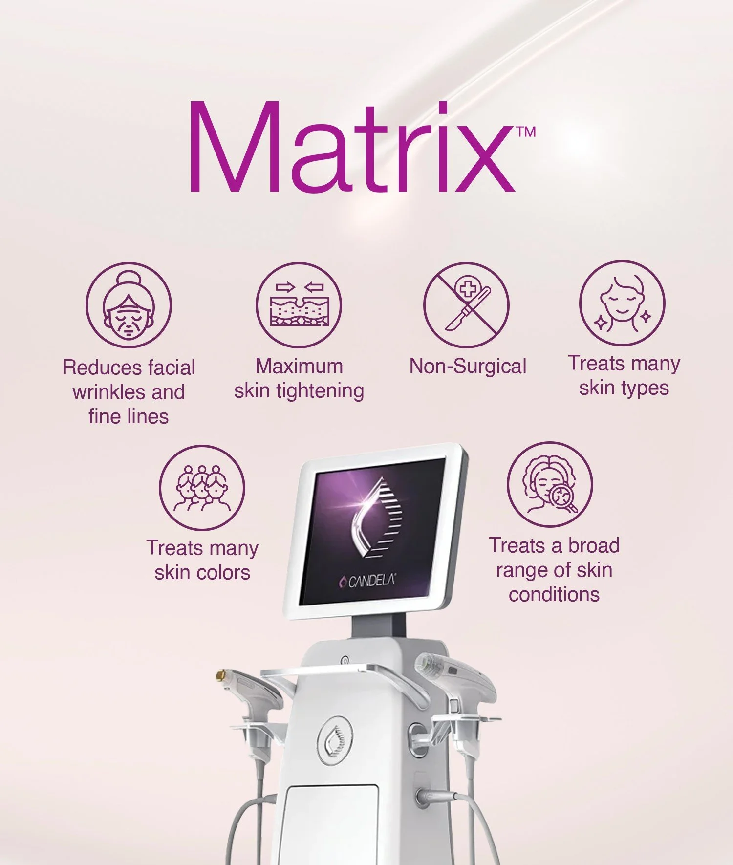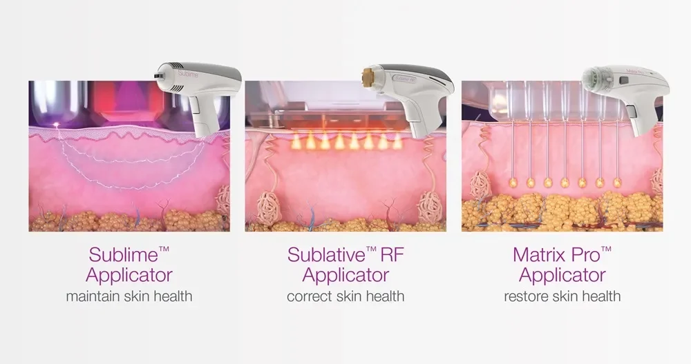 Profound Matrix System is a multi-platform skin rejuvenation system that uses different types of radio frequency (RF) energy to address skin concerns like wrinkles, laxity, and texture. It combines three distinct RF modalities—Matrix Pro (microneedling), Sublative RF (resurfacing), Sublime (tightening) —into one device to provide customizable, multi-layer skin treatment with minimal downtime